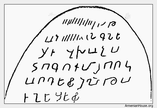 четко выделяются армянские буквы и без особого труда прочитываются слова:... ցի զխաչս/ ...որ կ/արդէք յաղաւթս/ իշեցէք (крест ... прочитав, молитвой помяните»). Эта надпись состоит из шести коротких строк. Исследователями, пытавшимися прочесть ее, контуры букв, видимо, были обведены мелом, что непозволительно и является проявлением ненаучного подхода к прочтению надписей.